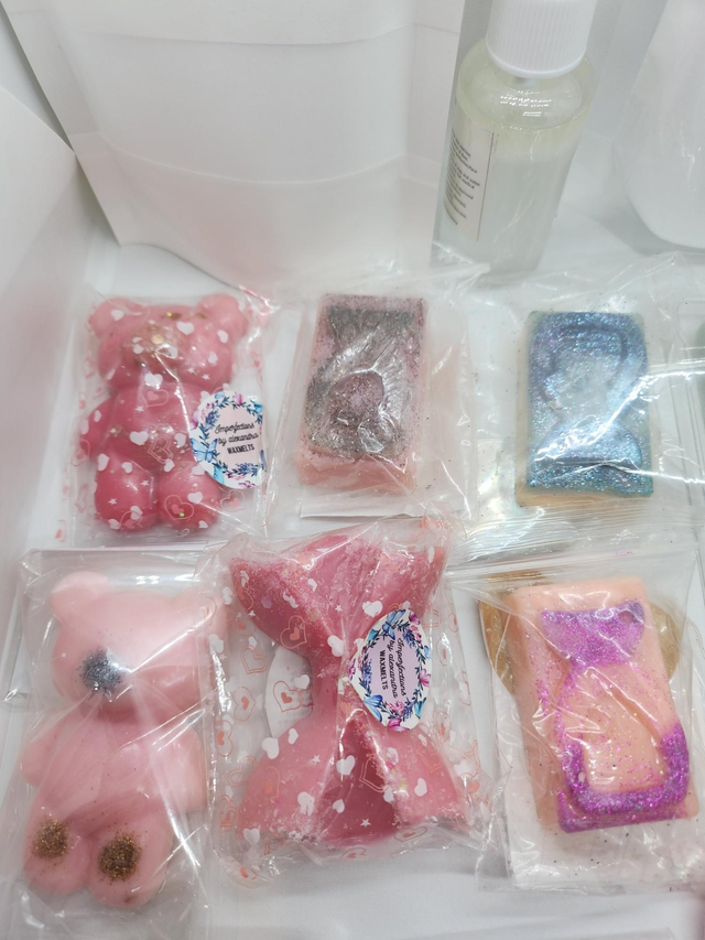 1 carpet freshener 100 gms. 100 gms of mop sink and toilet fizzels . Wax melts and mini room spray