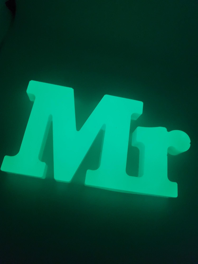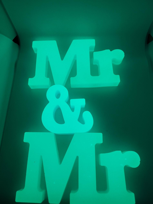 Homemade glow in the dark Mr &Mr sign.